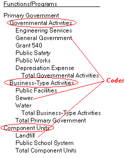 Use this tab to assign the Source Segment, Function/Program, and Source Codes to the current GASB statement format. The Source Segment, that is selected, determines the Source Codes that display on this tab and ultimately print on the actual report. Basically, you are assigning the titles that will print on the left side of the report.
