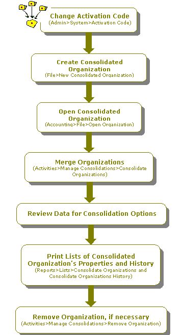 The following is a checklist for creating a consolidated organization and merging two or more organizations: