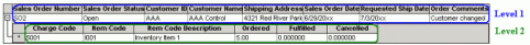 Cancel Orders: This table supports the drill down feature. This feature allows you to view sales order information on the summary level and detail information on the document level. You can click on the plus (+) sign next to an item to expand the outline. When an item has been expanded, the plus (+) sign becomes a minus (-) sign. To collapse an item, simply click the minus sign. The following sample shows the two levels of detail: