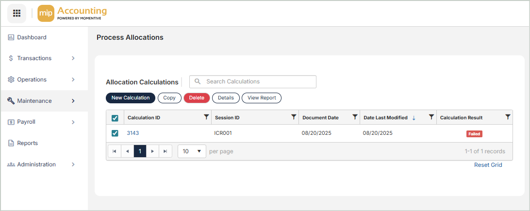 To generate the report at a later date (after you've already run a calculation), go to Transactions > Allocations > Process Allocations, select a calculation ID from the grid, and select View Report.