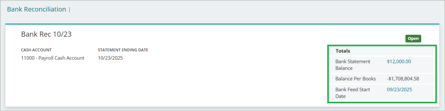 Bank Feed Start Date: The starting date for cleared transactions to pull in from the bank connection. These transactions will be compared to uncleared transactions in MIP to assist with the bank reconciliation process. You can update this value by selecting the start date and entering a new one. Note that dates in locked reconciliations cannot be edited.
