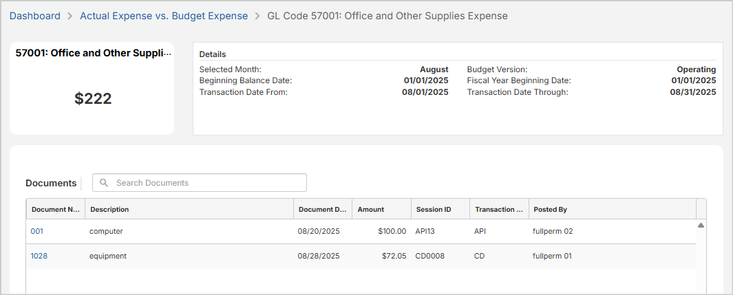 View Expense Details for a GL Code