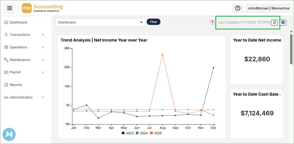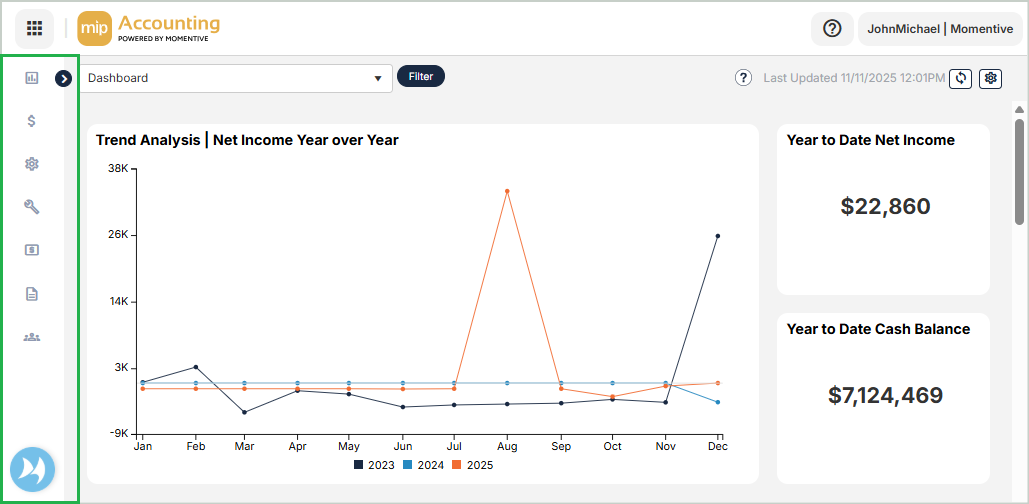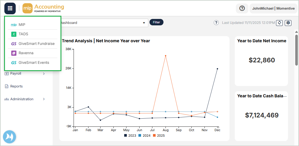 Change Organization - If you have access to multiple organizations in MIP Modern, you can switch between them using this menu. The organization you select here retains the next time you sign in.
