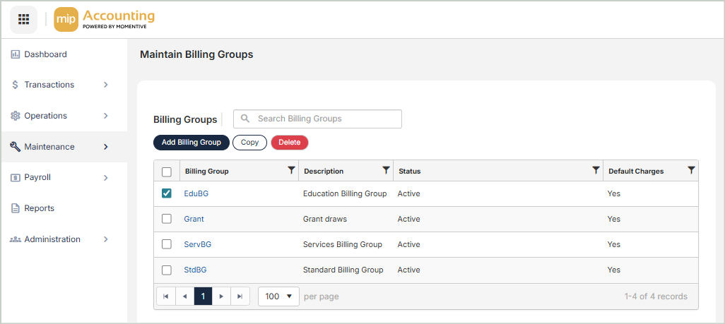 Billing Groups Grid