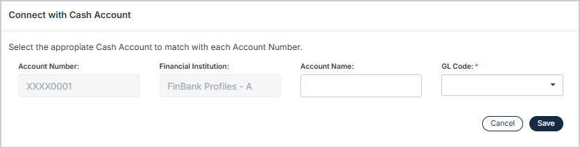 You can then connect your selected bank account with the appropriate general ledger code.