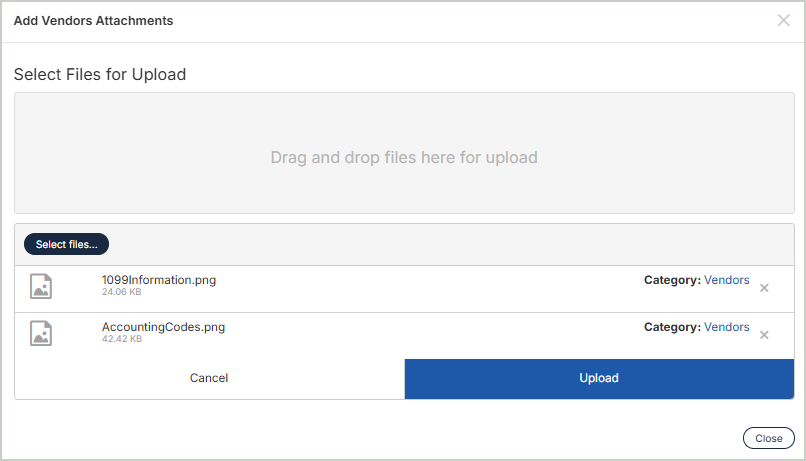 Use the Attachments tab to quickly attach related documentation to a vendor record.