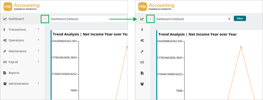 The MIP Modern interface now has a lighter design that aligns with other products across Momentive. The new interface features a collapsible navigation menu that allows you to free up valuable screen space. Simply click the arrow at the top of the menu to expand or collapse it.