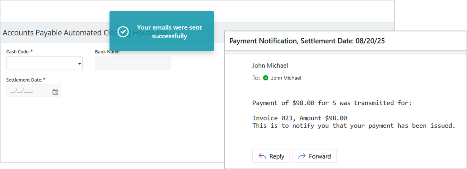 You can now automatically send payment notification emails to vendors in MIP Modern when an ACH file is created. This functionality exists today in Classic and is now available in the Modern interface. In order to use this feature, you'll need to ensure that your organization’s setup is correctly configured in MIP.
