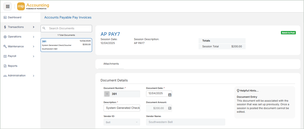 You can Post the session through the Unposted Sessions grid on the Pay Invoice Sessions page.