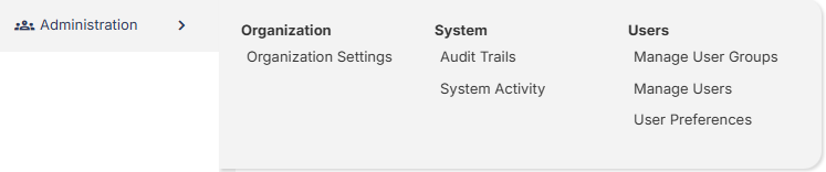 MIP Modern provides a range of administration features for your organization. These features provide detailed settings for configuring your system, organization, security, and chart of accounts. The availability of these operations depend on your access rights.