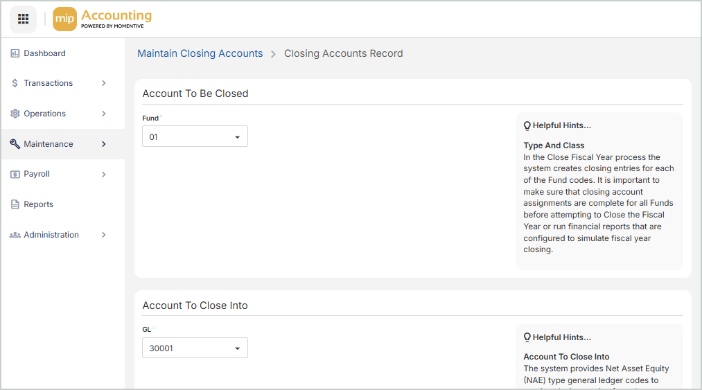 GL Account: Select the GL account into which the Fund account is to be closed.