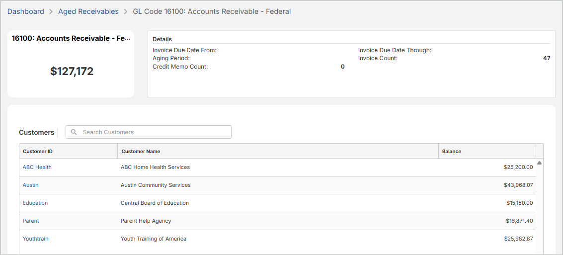 Customer ID: The ID assigned to the customer. Select a Customer ID to view its details.