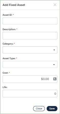 To speed up the transaction entry process, there are only a few fields available when adding an asset through Quick Entry. You can add a field for Life through module setup (see Set Up the Fixed Assets Module).