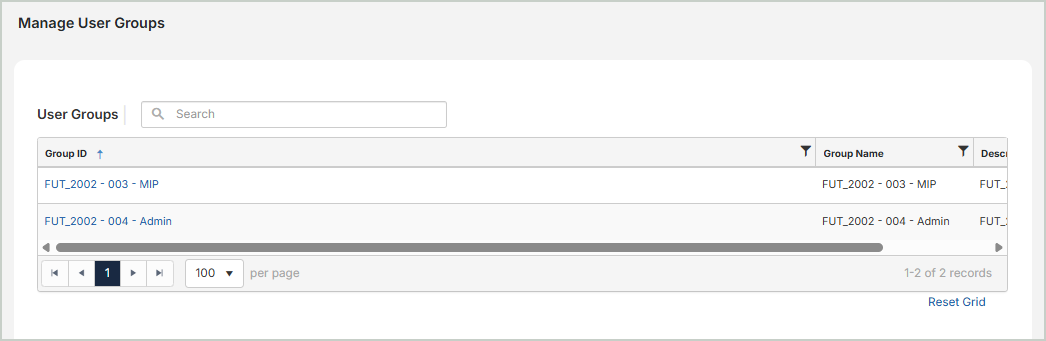 Note: Users Groups cannot be created within MIP. To create a User Group, sign in to the MIP User Portal and select Users & Groups.