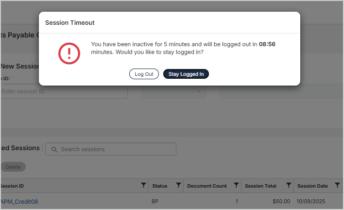 Once the timeout notification appears, users can choose between remaining logged in or logging out. If no action is taken, the user will be automatically logged out.