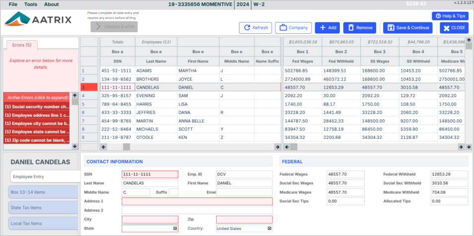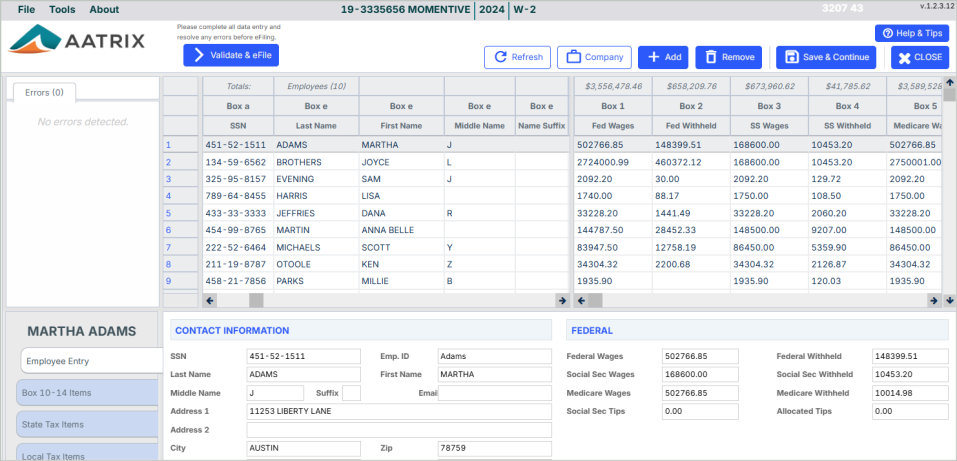 Use the Aatrix Preparer Grid to verify and correct all employee W-2 information.