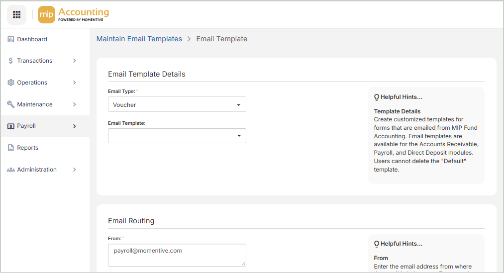 Create default and custom email templates for forms sent from MIP Cloud. Before creating custom templates, you'll need to define default preferences - such as subject line and message - for each form type in the system. Note that the "Default" email template can't be deleted.
