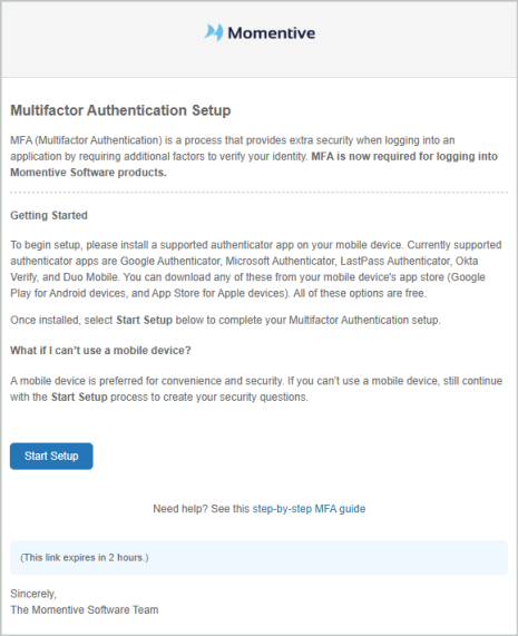 An email will be sent to you with a link to start the MFA setup.