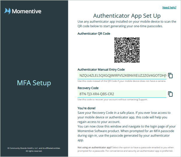 Multifactor Authentication (MFA) adds an extra layer of security by requiring two verification steps to log in to your account. When you sign in to a Momentive product, you'll be asked to enter a passcode from your authenticator app or email to successfully log in. You only need to set up MFA once. After setup, just open your authenticator app or email during login to get your passcode. See Troubleshooting and FAQs at the bottom of this page.