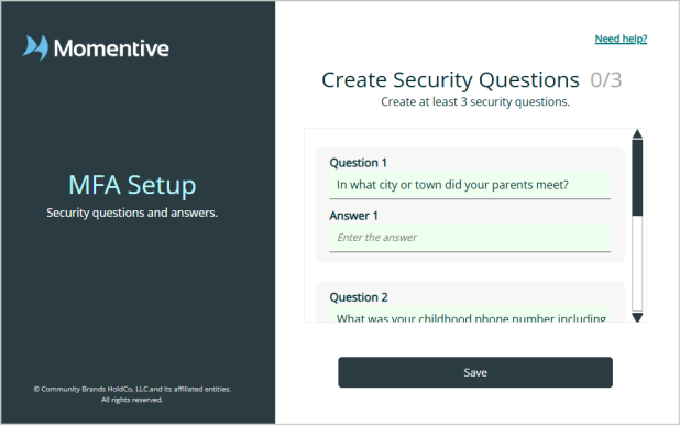 If you haven’t set up MFA yet, you’ll be prompted to complete the MFA setup when signing into a Momentive product.