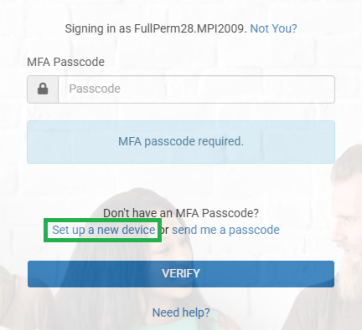 Select Set up a new device. An email will be sent to you with a link to start the MFA setup.