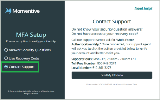Option C - Contact Support to help you recover your account. The quickest way is through the support chat. You can also call support at the listed number. Once you've contacted a support analyst and a case is created, select Send My Info Now to send a request to the support team. After the request is processed, you'll receive an email once your account is reset.