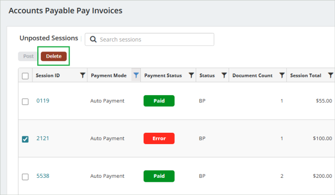 You can now delete unposted Auto Pay sessions in Modern. This gives you greater control to remove unused sessions or those with payment issues, helping maintain data accuracy between MIP and Corpay.