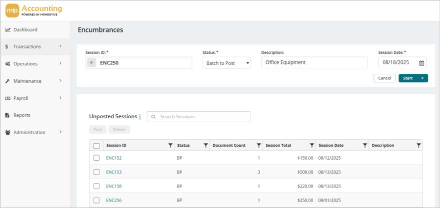 The Encumbrances module is now available in MIP Modern. Encumbrances give your organization real-time visibility into committed funds, enhancing budget control and helping prevent overspending. By reserving funds for planned expenditures, you can track obligations alongside actual expenses for more accurate financial reporting.